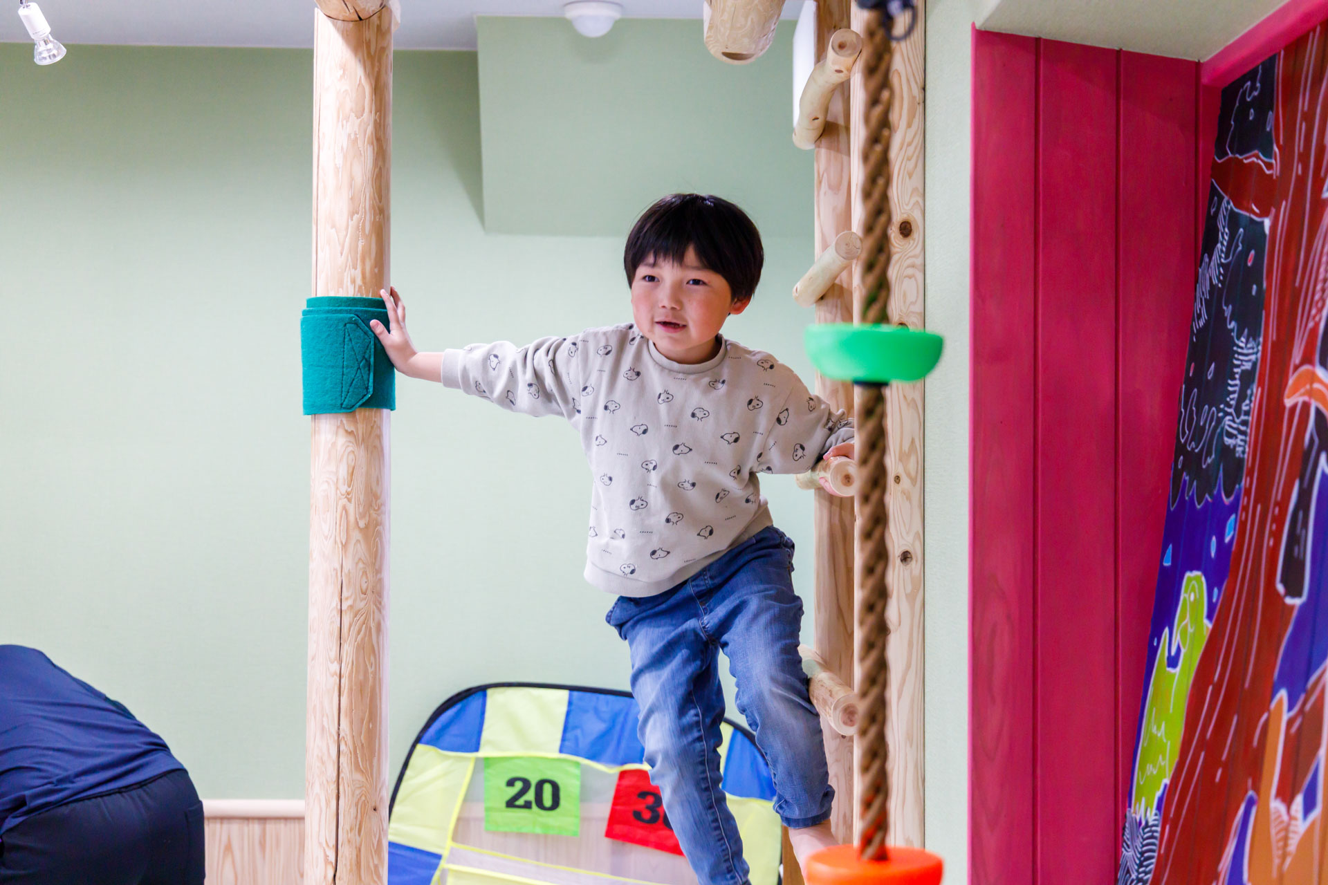 運動神経、感覚統合神経、バランス感覚を楽しみながら、さらにルールを守りながら、お子さまの育み支援を実施します。安全を配慮しつつ、「帰りたくない!」「また行きたい!」と思っていただけるように工夫していきます。お子さま一人ひとりの心を大切にし、「チャレンジする力」「自分で創り上げる喜び」を育み、一人ひとりの成長の歩調に合わせて、笑顔いっぱいの毎日を送れるようにお手伝いします。