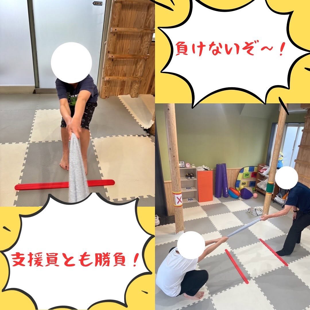 運動に関する課題ではタオルの引っ張り合いを支援員と勝負されヘトヘトになるまで頑張る利用者様も😓