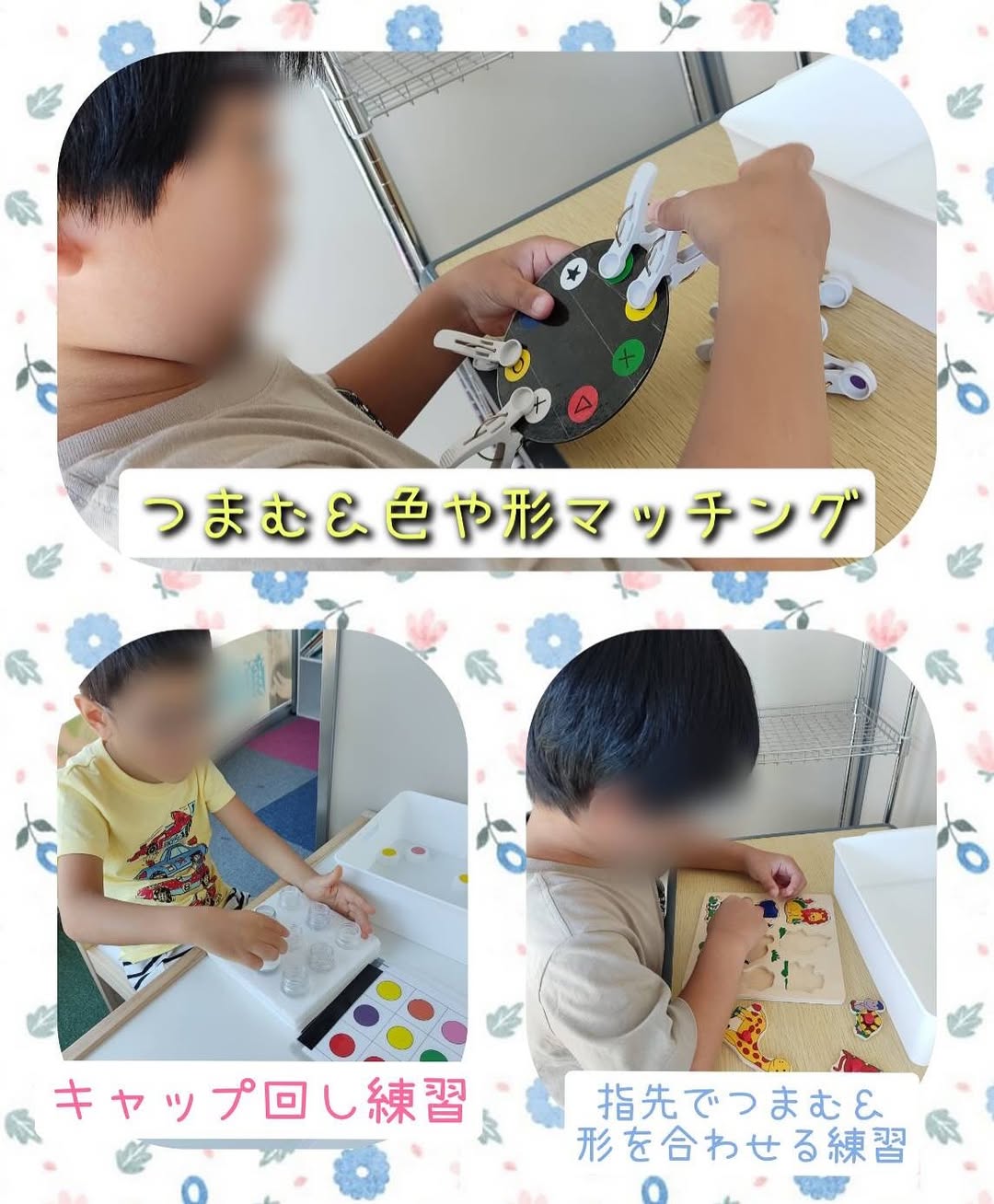 手指課題を主に、プレイルームでの運動、排泄の習慣化(練習)、着脱の練習、他児童さんや職員とのやりとりの中で社会性を育むなどニーズに応じて様々な支援を行っています。