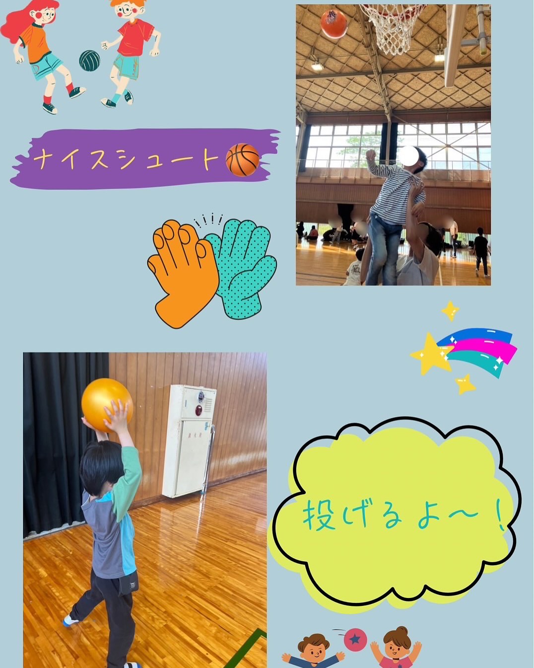 A君はバスケットに意欲的に取り組まれ、何度も挑戦し支援員と協力して見事シュートを決めることができました🙌🏻🏀