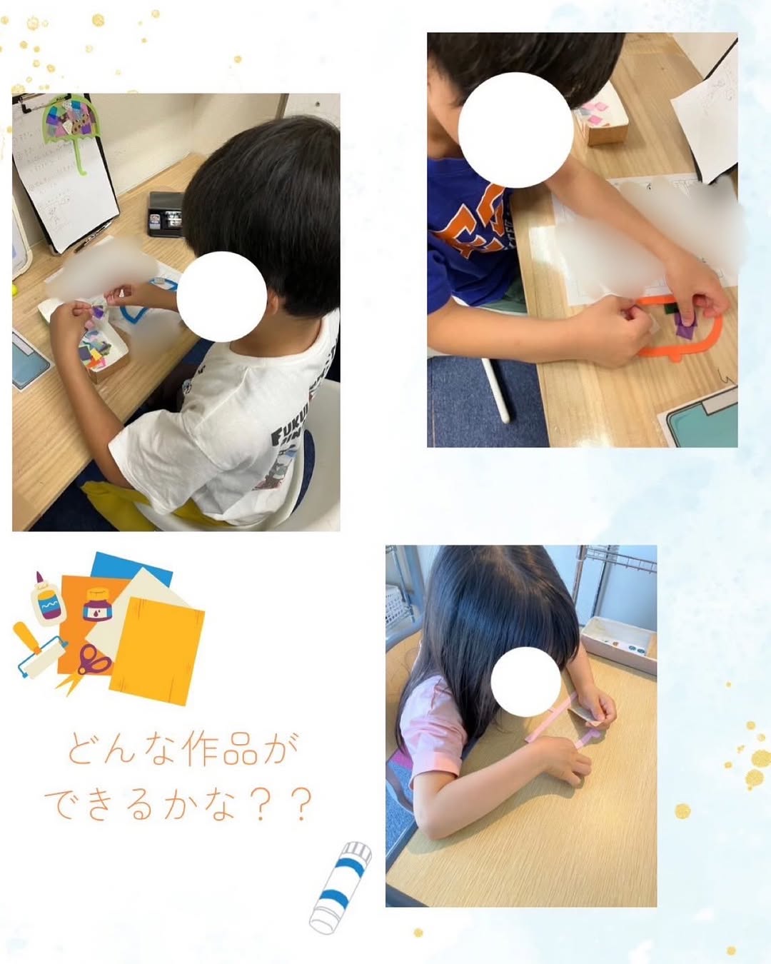飾られた他児童さんの作品を見て「かわいい〜」「〇〇君のや!」と言い合ったり、自身が作った作品を見て嬉しそうな様子の児童さんたちでした。